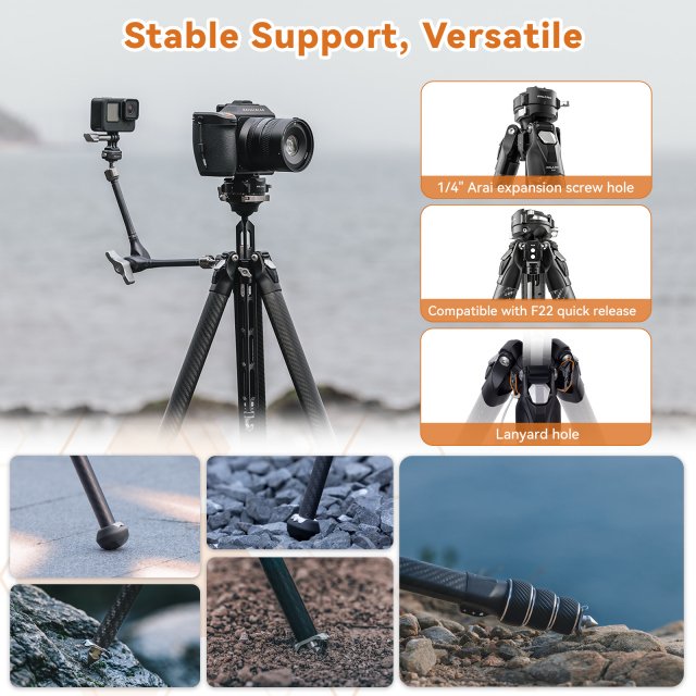 Stop compromising between portability and stability—this carbon fiber tripod delivers both without sacrifice. Imagine having the confidence to shoot long exposures in windy conditions knowing your setup is rock-solid stable. Picture yourself capturing that perfect sunset shot because you were able to set up your gear in seconds rather than minutes. Envision traveling to breathtaking locations with professional support that doesn’t weigh you down or take up precious bag space. This tripod represents the culmination of thoughtful engineering and real-world testing, designed specifically for photographers who understand that great support is the foundation of great photography. The time you save on setup, the shots you capture that would otherwise be ruined by vibration, and the creative possibilities unlocked by its versatile features will transform how you work. Don’t let your next great shot be limited by inadequate equipment. Add this professional carbon fiber tripod to your kit today and experience the freedom that comes from having support you can truly depend on, wherever your creativity takes you.