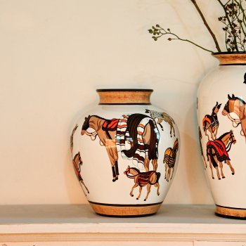 Ceramic Horse Pattern Vase – Hand-Painted Chinese Retro Porcelain Flowerpot